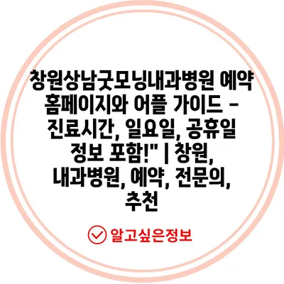 창원상남굿모닝내과병원 예약 홈페이지와 어플 설명서 – 진료시간, 일요일, 공휴일 정보 포함!