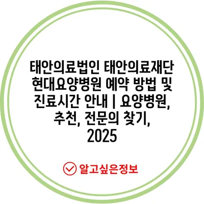 태안의료법인 태안의료재단 현대요양병원 예약 방법 및 진료시간 안내 | 요양병원, 추천, 전문의 찾기, 2025