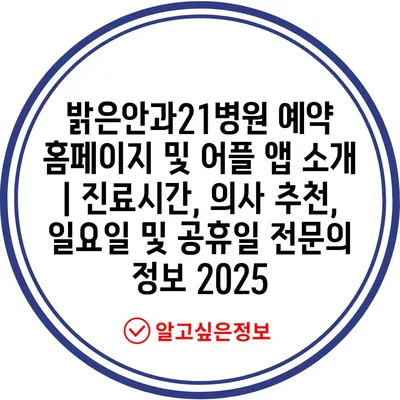밝은안과21병원 예약 홈페이지 및 어플 앱 소개 | 진료시간, 의사 추천, 일요일 및 공휴일 전연락 정보 2025