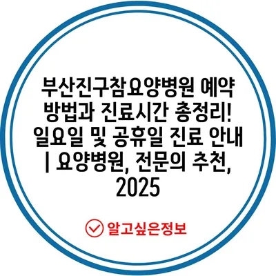 ✅ 부산진구참요양병원 예약 방법과 진료시간을 지금 바로 알아보세요!