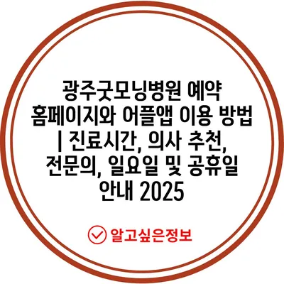 광주굿모닝병원 예약 홈페이지와 어플앱 이용 방법 | 진료시간, 의사 추천, 전연락, 일요일 및 공휴일 공지 2025에 대해 알아보겠습니다.