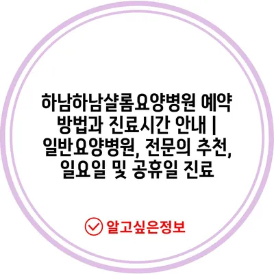 하남하남샬롬요양병원 예약 방법과 진료시간 안내 | 일반요양병원, 전문의 추천, 일요일 및 공휴일 진료