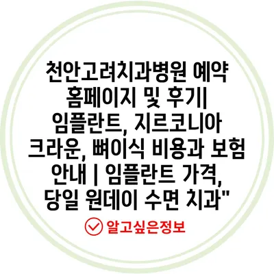 천안고려치과병원 예약 홈페이지 및 후기| 임플란트, 지르코니아 크라운, 뼈이식 비용과 보험 공지 | 임플란트 가격, 당일 원데이 수면 치과” 에 대해 자주 묻는 질문 TOP 5