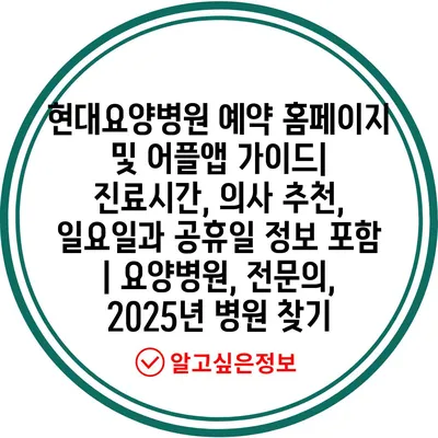 현대요양병원 예약 홈페이지 및 어플앱 설명서| 진료시간, 의사 추천, 일요일과 공휴일 정보 포함 | 요양병원, 전연락, 2025년 병원 찾기 에 대해 자주 묻는 질문 TOP 5