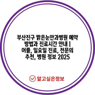부산진구 밝은눈안과병원 예약 방법과 진료시간 공지 | 어플, 일요일 진료, 전연락 추천, 병원 정보 2025 에 대해 자주 묻는 질문 TOP 5