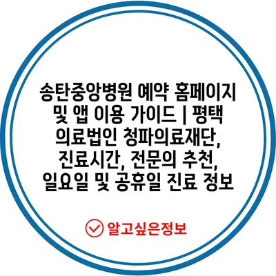송탄중앙병원 예약 홈페이지 및 앱 이용 가이드 | 평택 의료법인 청파의료재단, 진료시간, 전문의 추천, 일요일 및 공휴일 진료 정보