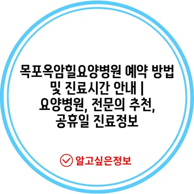 ✅ 목포옥암힐요양병원의 진료시간 및 예약 방법을 쉽고 빠르게 알아보세요.