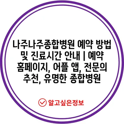 ✅ 나주나주종합병원의 예약 방법을 지금 바로 알아보세요!
