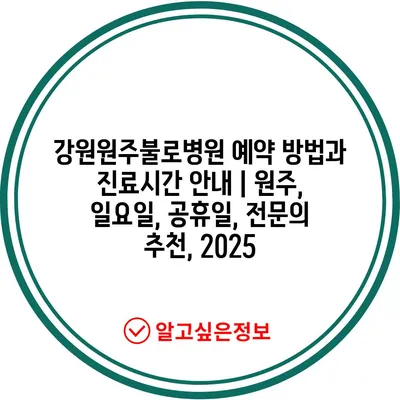 강원원주불로병원 예약 방법과 진료시간 공지 | 원주, 일요일, 공휴일, 전연락 추천, 2025 에 대해 자주 묻는 질문 TOP 5