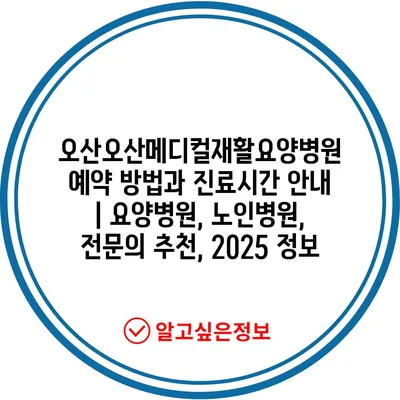 오산오산메디컬재활요양병원 예약 방법과 진료시간 공지 | 요양병원, 노인병원, 전연락 추천, 2025 정보 에 대해 자주 묻는 질문 TOP 5