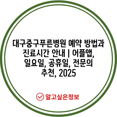 대구중구푸른병원 예약 방법과 진료시간 공지 | 어플앱, 일요일, 공휴일, 전연락 추천, 2025 에 대해 자주 묻는 질문 TOP 5