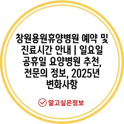창원용원휴양병원 예약 및 진료시간 공지 | 일요일 공휴일 요양병원 추천, 전연락 정보, 2025년 변화사항에 대해 자주 묻는 질문 TOP 5