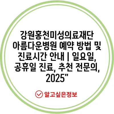 강원홍천미성의료재단 아름다운병원 예약 방법 및 진료시간 공지 | 일요일, 공휴일 진료, 추천 전연락, 2025″ 에 대해 자주 묻는 질문 TOP 5