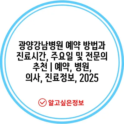 ✅ 광양강남병원의 예약 방법과 팁을 알아보세요!