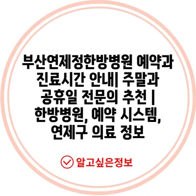 부산연제정한방병원 예약과 진료시간 공지| 주말과 공휴일 전연락 추천 | 한방병원, 예약 시스템, 연제구 의료 정보 에 대해 자주 묻는 질문 TOP 5