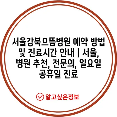 ✅ 서울강북으뜸병원 예약 방법과 진료시간을 자세히 알아보세요.