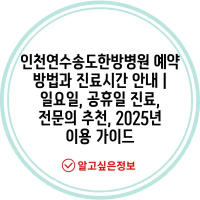 인천연수송도한방병원 예약 방법과 진료시간 공지 | 일요일, 공휴일 진료, 전연락 추천, 2025년 이용 설명서 에 대해 자주 묻는 질문 TOP 5