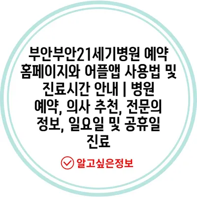 ✅ 부안부안21세기병원의 진료시간과 예약 방법을 자세히 알아보세요.