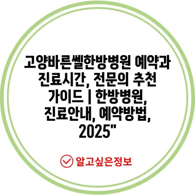 ✅ 고양바른쎌 한방병원의 진료시간과 예약 방법을 자세히 알아보세요.