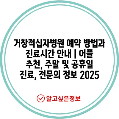거창적십자병원 예약 방법과 진료시간 공지 | 어플 추천, 주말 및 공휴일 진료, 전연락 정보 2025에 대해 알아보겠습니다.