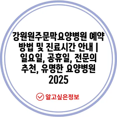 강원원주문막요양병원 예약 방법 및 진료시간 공지 | 일요일, 공휴일, 전연락 추천, 유명한 요양병원 2025 에 대해 자주 묻는 질문 TOP 5
