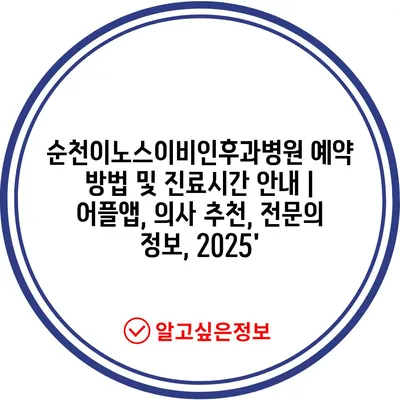 ✅ 순천이노스 이비인후과병원 예약 방법을 자세히 알아보세요.