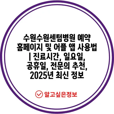 수원수원센텀병원 예약 홈페이지 및 어플 앱 사용법 | 진료시간, 일요일, 공휴일, 전연락 추천, 2025년 최신 정보