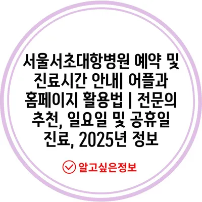 서울서초대항병원 예약 및 진료시간 공지| 어플과 홈페이지 활용법 | 전연락 추천, 일요일 및 공휴일 진료, 2025년 정보에 대해 자주 묻는 질문 TOP 5