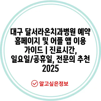 ✅ 대구 달서라온치과병원의 예약 시스템을 간편하게 알아보세요.
