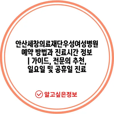 ✅ 안산세창의료재단우성여성병원의 예약 방법을 자세히 알아보세요.