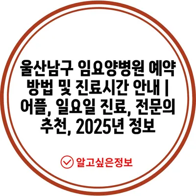 울산남구 임요양병원 예약 방법 및 진료시간 공지 | 어플, 일요일 진료, 전연락 추천, 2025년 정보에 대해 자주 묻는 질문 TOP 5