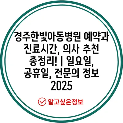 ✅ 경주한빛아동병원의 진료시간과 예약 방법을 자세히 알아보세요.