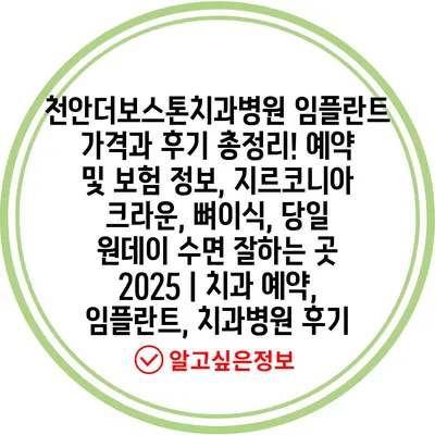 천안더보스톤치과병원 임플란트 가격과 후기 총정리! 예약 및 보험 정보, 지르코니아 크라운, 뼈이식, 당일 원데이 수면 잘하는 곳 2025 | 치과 예약, 임플란트, 치과병원 후기