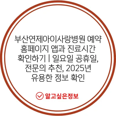 부산연제아이사랑병원 예약 홈페이지 앱과 진료시간 확인하기 | 일요일 공휴일, 전연락 추천, 2025년 유용한 정보 확인에 대해 자주 묻는 질문 TOP 5