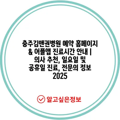 ✅ 충주김앤권병원 예약 방법과 진료시간을 알아보세요!