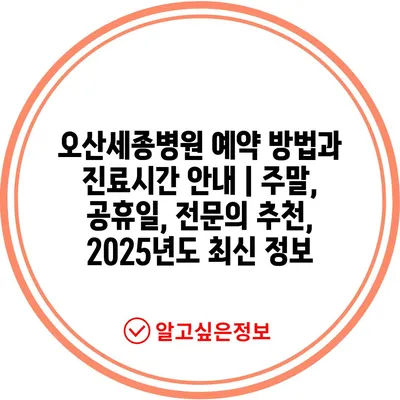 오산세종병원 예약 방법과 진료시간 공지 | 주말, 공휴일, 전연락 추천, 2025년도 최신 정보 에 대해 자주 묻는 질문 TOP 5