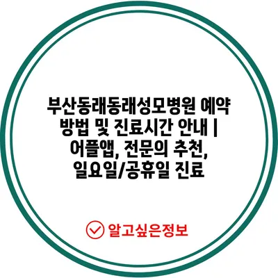 ✅ 부산동래동래성모병원 예약 방법을 자세히 알아보세요.