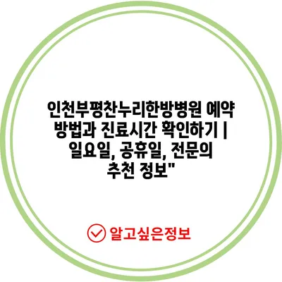 ✅ 인천부평찬누리한방병원의 예약 방법과 진료시간을 자세히 알아보세요.