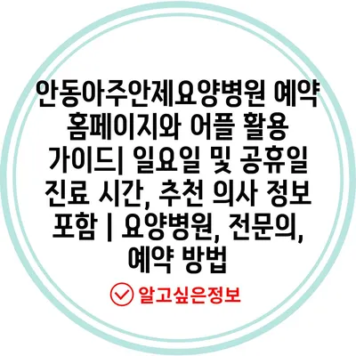 안동아주안제요양병원 예약 홈페이지와 어플 활용 설명서| 일요일 및 공휴일 진료 시간, 추천 의사 정보 포함 | 요양병원, 전연락, 예약 방법 에 대해 자주 묻는 질문 TOP 5