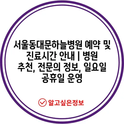 서울동대문하늘병원의 예약 방법과 진료시간을 자세히 알아보세요.