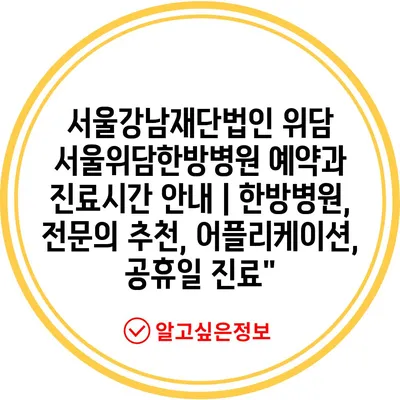 ✅ 서울위담한방병원 예약 방법과 진료시간을 간편하게 알아보세요.