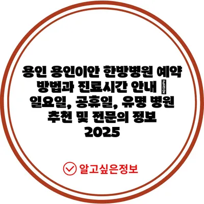 용인 용인이안 한방병원 예약 방법과 진료시간 공지 | 일요일, 공휴일, 유명 병원 추천 및 전연락 정보 2025 에 대해 자주 묻는 질문 TOP 5