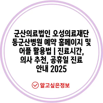 군산의료법인 오성의료재단 동군산병원 예약 홈페이지 및 어플 활용법 | 진료시간, 의사 추천, 공휴일 진료 공지 2025