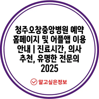 ✅ 청주오창중앙병원의 진료시간과 예약 방법을 쉽게 알아보세요.