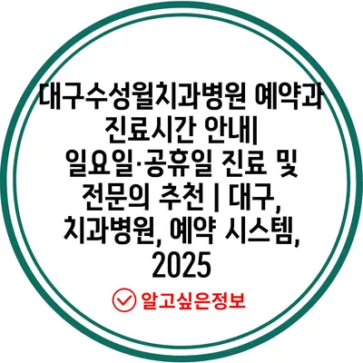 대구수성윌치과병원 예약과 진료시간 공지| 일요일·공휴일 진료 및 전연락 추천 | 대구, 치과병원, 예약 시스템, 2025 에 대해 자주 묻는 질문 TOP 5
