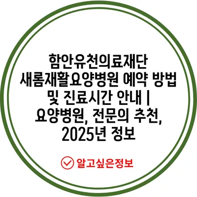 함안유천의료재단 새롬재활요양병원 예약 방법 및 진료시간 공지 | 요양병원, 전연락 추천, 2025년 정보 에 대해 자주 묻는 질문 TOP 5