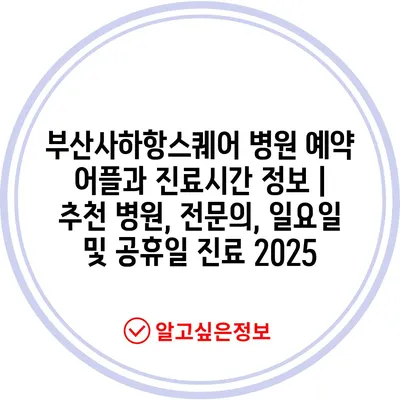 부산사하항스퀘어 병원 예약 어플과 진료시간 정보 | 추천 병원, 전연락, 일요일 및 공휴일 진료 2025에 대해 공지해 제공합니다.