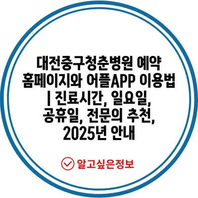 대전중구청춘병원 예약 홈페이지와 어플APP 이용법 | 진료시간, 일요일, 공휴일, 전연락 추천, 2025년 공지 에 대해 자주 묻는 질문 TOP 5