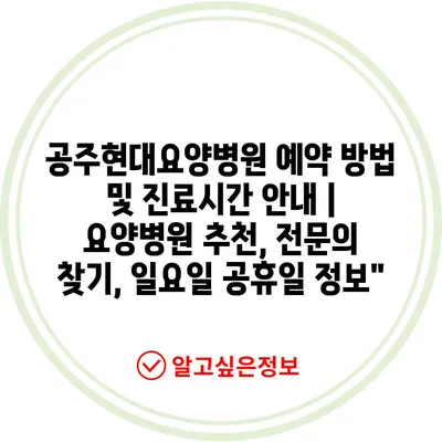 ✅ 공주현대요양병원 예약 방법을 지금 바로 확인하세요!