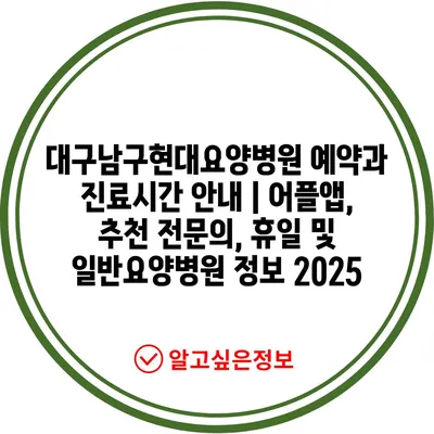 대구남구현대요양병원 예약과 진료시간 공지 | 어플앱, 추천 전연락, 휴일 및 일반요양병원 정보 2025 에 대해 자주 묻는 질문 TOP 5